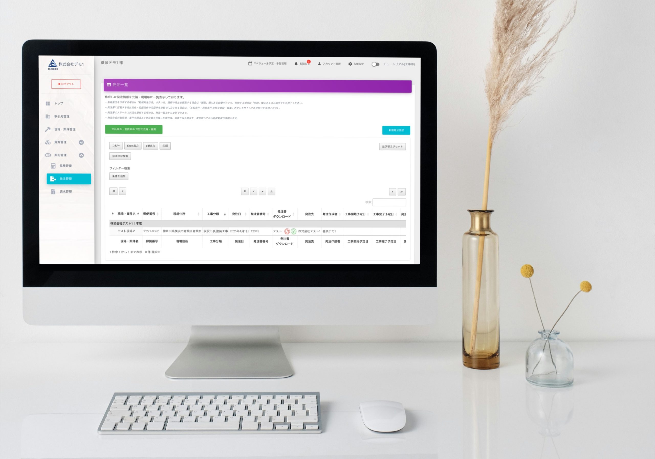 作成された発注書は取引先毎、現場毎に一覧表示され、ExcelとPDFでダウンロードが可能となります。